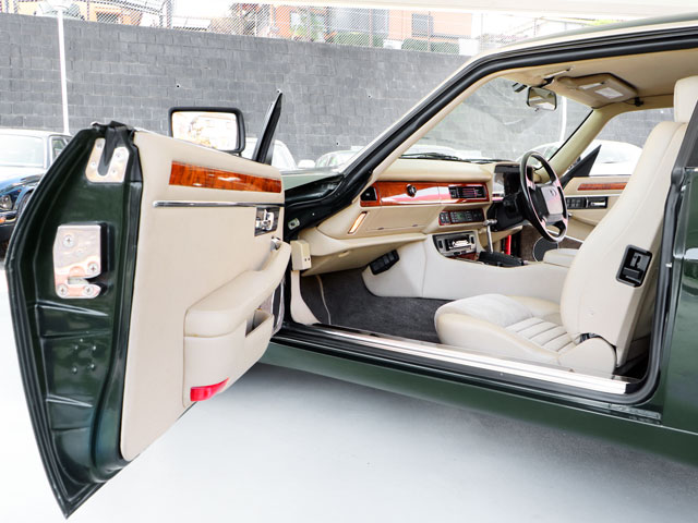 正規ディーラー車/2オーナー/XJS後期型/走行40,433km/フルノーマル/2+2キャビン(4名乗車)/車検整備付き/ジャガー&デイムラー専門自社認証工場(認証番号:1-12095)にて24ヶ月法定点検整備実施※記録簿発行/ボディーカラー『ブリティッシュレーシンググリーン(HFB)』/4.0リッター直列6気筒DOHCエンジン/スポーツモード付き電子制御4速オートマチック/純正16インチ『FIVE-SPOKE』アルミホイール(225/55R16ミシュランPILOT-PRIMACY-LCラジアル:8分山)/ヘッドライトウオッシャー/ドアミラークロームメッキドアミラー/運転席エアバッグ/『Parchment』ベージュカラーインテリア(HEZ)/レザー巻きステアリング/ウオルナットウッドトリム/レザー&メタルコンビTバーシフトノブ/イングリッシュツイード&レザーパワーシート/センタートリップコンピューター/クルーズコントロール/オートエアコン(HFC冷媒R134a)/パイオニアCDオーディオヘッドユニット(USBポート/iPhone接続可)/アンテナ分離型音声案内タイプETC/アルミスカッフプレート(サイドシルプレート)/ルーフライナー(天井内張り)張替済/ディーラー新車時参考価格985万円