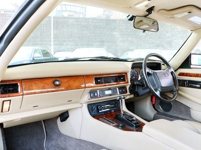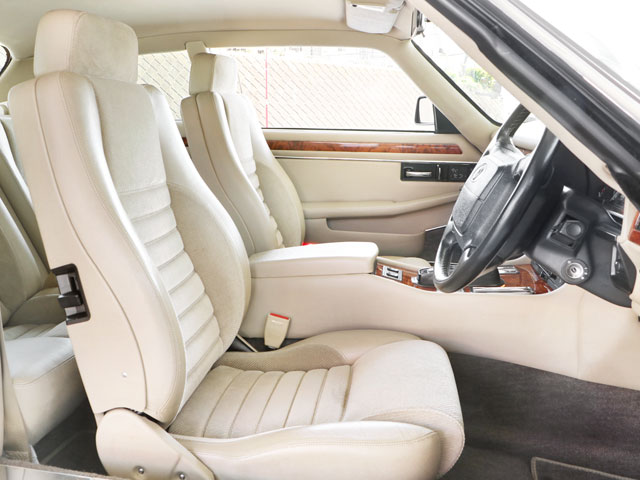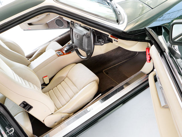 正規ディーラー車/2オーナー/XJS後期型/走行40,433km/フルノーマル/2+2キャビン(4名乗車)/車検整備付き/ジャガー&デイムラー専門自社認証工場(認証番号:1-12095)にて24ヶ月法定点検整備実施※記録簿発行/ボディーカラー『ブリティッシュレーシンググリーン(HFB)』/4.0リッター直列6気筒DOHCエンジン/スポーツモード付き電子制御4速オートマチック/純正16インチ『FIVE-SPOKE』アルミホイール(225/55R16ミシュランPILOT-PRIMACY-LCラジアル:8分山)/ヘッドライトウオッシャー/ドアミラークロームメッキドアミラー/運転席エアバッグ/『Parchment』ベージュカラーインテリア(HEZ)/レザー巻きステアリング/ウオルナットウッドトリム/レザー&メタルコンビTバーシフトノブ/イングリッシュツイード&レザーパワーシート/センタートリップコンピューター/クルーズコントロール/オートエアコン(HFC冷媒R134a)/パイオニアCDオーディオヘッドユニット(USBポート/iPhone接続可)/アンテナ分離型音声案内タイプETC/アルミスカッフプレート(サイドシルプレート)/ルーフライナー(天井内張り)張替済/ディーラー新車時参考価格985万円