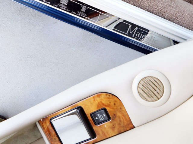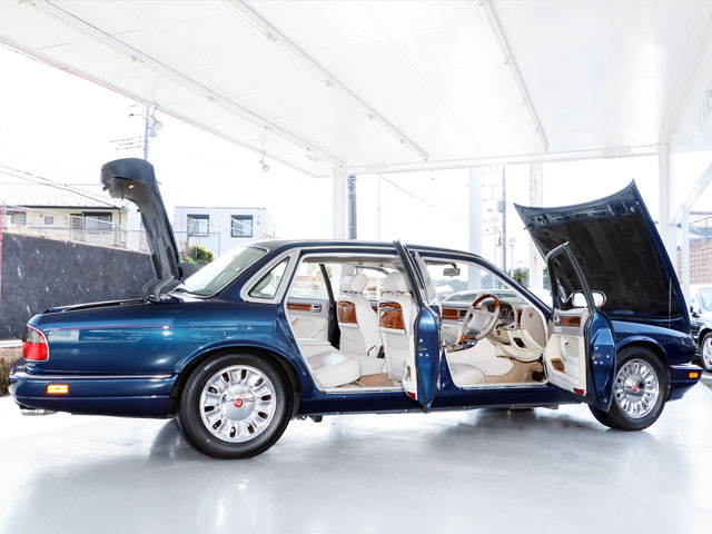 正規ディーラー車/X305最終型V12/稀少限定特別仕様車『マジェスティック』/車検整備付き/ジャガー&デイムラー専門自社認証工場(認証番号:1-12095)にて法定24ヶ月点検整備をご納車前に実施※記録簿発行/ボディーカラー『サファイヤブルー(JHE)』/リアセパレートリムジン4名乗車/ロングボディ/ジャガー製最終型V12エンジン/デイムラーフルーテッドグリル/デイムラーマジェスティック専用リアエンブレム/X308クリアヘッドライトレンズ/ロービームLEDコンバージョン/ヘッドライトウオッシャー/デイムラー純正『タービンノス』クロームメッキディッシュホイール(2024年度製225/60R16ダンロップビューロVE303:9分山付き)/ドアミラーメッキカバー/メッキサイドモール/メッキアウタードアノブ/オートミールベージュカラーインテリア(AGD)/コノリーレザー/デイムラー専用象嵌細工バーウッドトリム/デイムラー純正リアルウールファーフロアマット/自動防眩式ルームミラー/デイムラー専用ウッドコンビステアリング/ウッドシフトノブ/パワーシート(シートヒーター機能付き)/左右独立型リアシートパワーリクライニング機構/フラップ式リアウッドピクニックテーブル/マジェスティック専用アルミサイドスカッフプレート/ハーマン・カードンプレミアムサウンドシステム/サブウーファー/純正CDチェンジャー/アンテナ分離型音声案内タイプETC/リアウインドシェード/ディーラー新車時参考価格1445万円