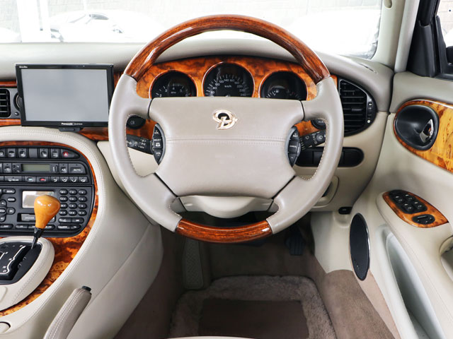 正規ディーラー車/ワンオーナー/低走行11,808km/モデルイヤー2000年/X308中期型スーパーV8/ロングボディ(LWB)/車検整備付き/ジャガー&デイムラー専門自社認証工場(認証番号:1-12095)にて法定24ヶ月点検整備を実施してご納車※記録簿発行/メーカーオプション外板色『カーニバルレッド(CFS)』/AJ27最終型4.0リッターV型8気筒DOHCスーパーチャージドエンジン(375PS)/メルセデス製電子制御5速AT(5G-Tronic/W5A-580)/デイムラー専用純正17インチ“SOLOR”アルミホイール(235/50R17ダンロップビューロVE303ラジアル)/C.A.T.S.電子制御サスペンションシステム/デイムラーフルーティッドグリル/専用クロームメッキパーツ(ドアミラーカバー/サイドモール/ウインドウピラートリム/テールレンズトリム/アウタードアノブ)/デイムラーロゴサイドスカッフプレート/スーパーチャージドデュアルマフラー/『Oat-meal』ベージュカラーインテリア(AGD)/デイムラー専用UKオートラックスレザー/ウールファーフロアマット/自動防眩式オプティカルルームミラー/ウッド&レザーコンビステアリング(電動チルト&テレスコピック機構付き)/デイムラー専用バーウォルナット象嵌ウッドパネル/ウッドシフトノブ/パイピングレザーパワーシート(3WAYポジションメモリー機構)/シートヒーター(全席)/デイムラー刺繍入りヘッドレスト/後部座席ピクニックテーブル/オートエアコン/クルーズコントロール/パナソニックナビゲーション/ナビ連動バックカメラ/アルパイン製純正プレミアムサウンドシステム/純正オーディオヘッドユニット/アンテナ分離型音声案内タイプETC/シートポジション呼び出し機能付きキーレスエントリー/コムテック製前後カメラタイプドライブレコーダー(フロント360°+リアFHD)/ルーフライナー(天井内張り)張替済み/ディーラー新車時参考価格1,290万円
